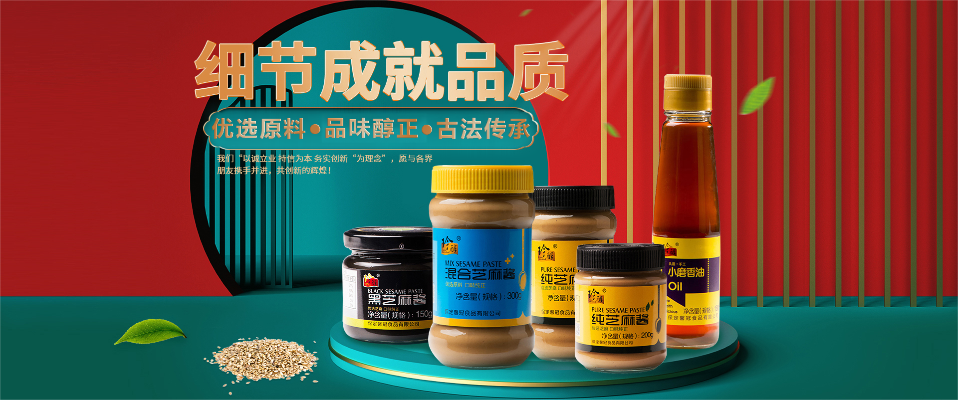 保定馨冠食品有限公司坐落在河北省保定市滿(mǎn)城區(qū)李鐵莊村。以“以誠(chéng)立業(yè) 持信為本 務(wù)實(shí)創(chuàng)新“為理念”。馨冠公司主要品牌“馨冠”“珍醇”“靖王”等注冊(cè)商標(biāo)。公司主營(yíng)芝麻油、芝麻醬、花生醬三大系列40多個(gè)產(chǎn)品。