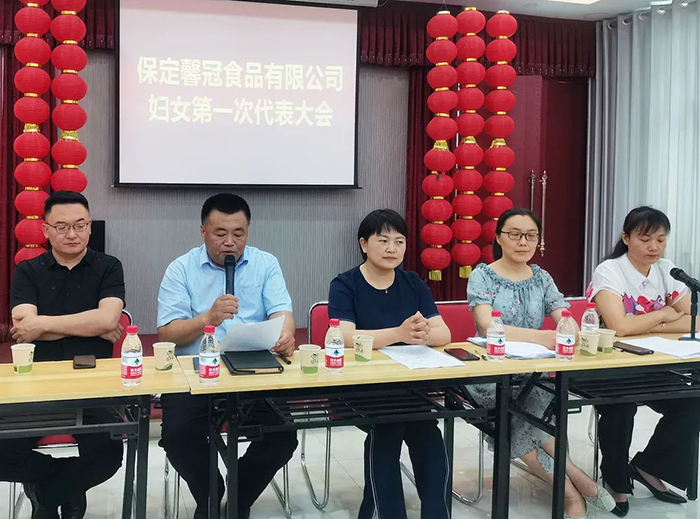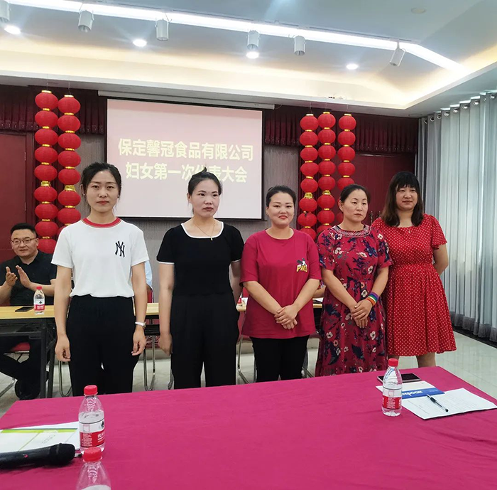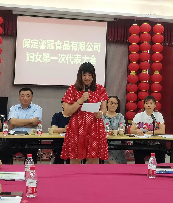 萬物蔥綠,麥浪金黃,在這個盛夏浪漫時節(jié),2021年6月8日,保定馨冠食品有限公司迎來公司第一次婦女代表大會。宣布成立馨冠食品公司“婦女聯(lián)合會”。會議選舉產(chǎn)生第一屆婦聯(lián)執(zhí)行委員3名、主席1名、副主席1名。滿城區(qū)婦聯(lián)主席要彥偉、婦聯(lián)三級主任科員安麗敏出席會議,于家莊鎮(zhèn)婦聯(lián)主席王艷茹主持會議。村支部書記盧志鵬及馨冠公司黨支部負責(zé)人出席會議。馨冠公司30名婦女代表參加會議。 滿城區(qū)婦聯(lián)主席要彥偉、馨冠公司董事長盧長永發(fā)表講話。
