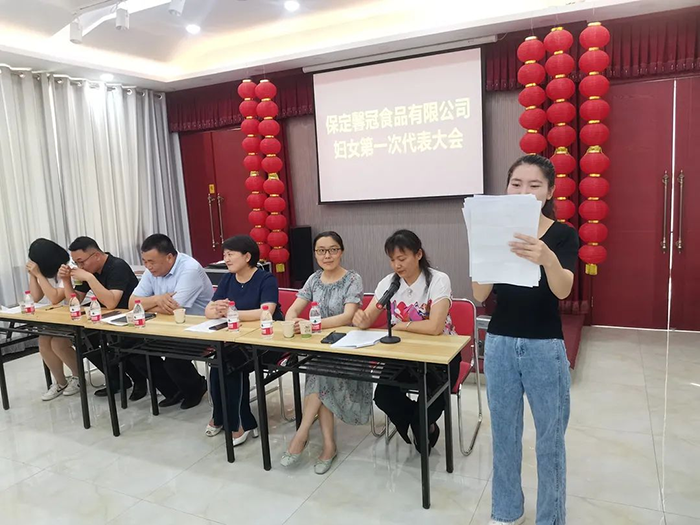 按照《中華全國婦女聯(lián)合會章程》,大會一致通過了《保定馨冠食品有限公司婦女第一次代表大會選舉辦法(草案)》,大會實行差額選舉,候選人數(shù)6名,應(yīng)選執(zhí)委5名。選出第一屆婦女聯(lián)合會執(zhí)行委員會委員3名。以等額選舉產(chǎn)生主席1人,副主席1人。