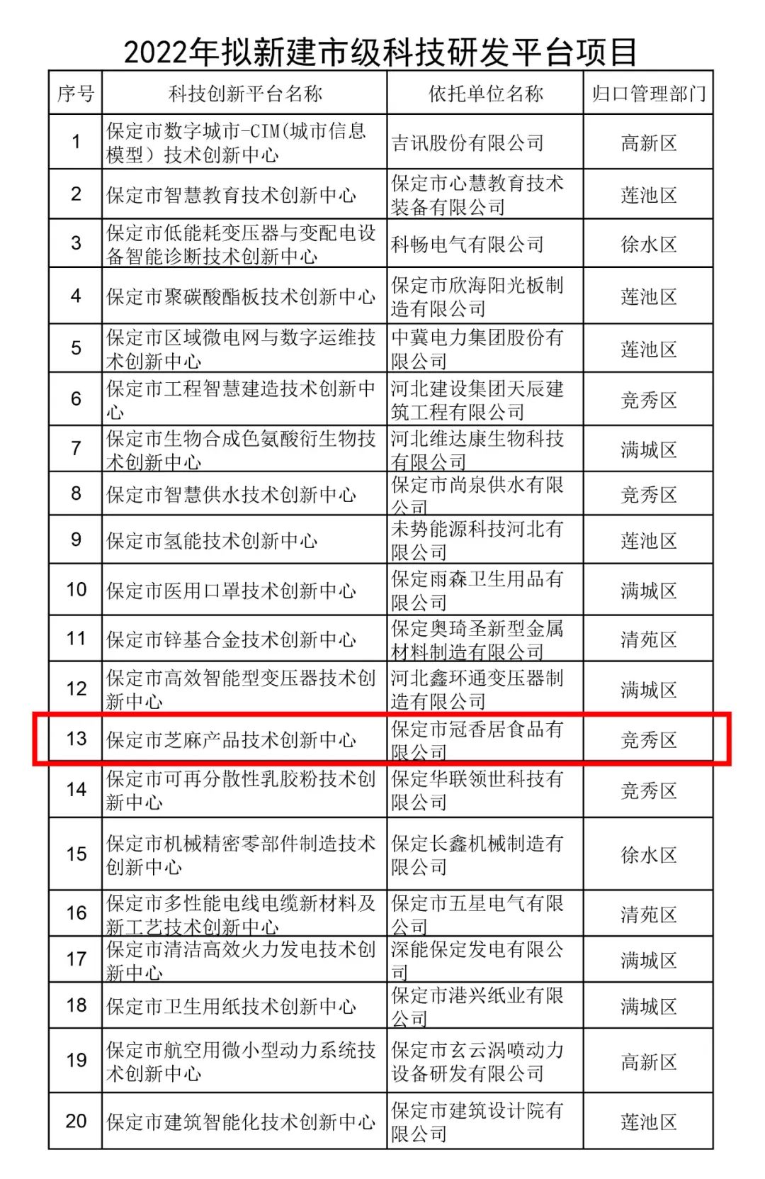 恭喜冠香居公司建立保定市芝麻產(chǎn)品技術(shù)創(chuàng)新中心